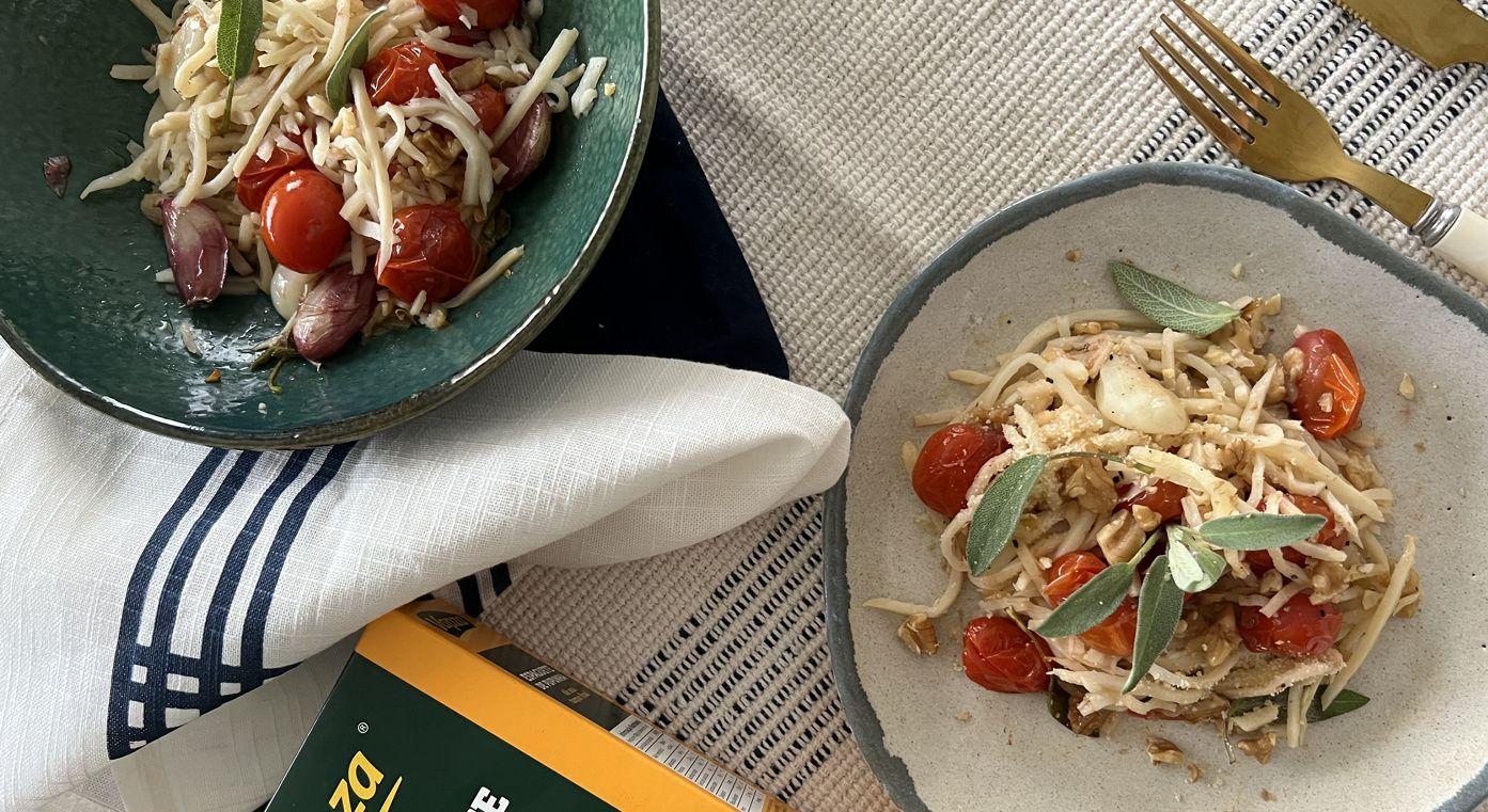 O nome “pesto” vem da palavra italiana “pestare”, que significa “amassar” ou “esmagar”, referindo-se ao método de preparo do molho em um pilão. O molho pesto, clássico italiano, é feito com manjericão, alho, azeite, queijo parmesão e pinoli. A receita encanta por sua simplicidade e sabores autênticos, e ainda fica pronta em apenas 20 minutos. …